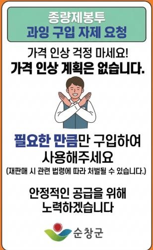 순창군, “종량제봉투 공급 안정적… 사재기 자제 당부”