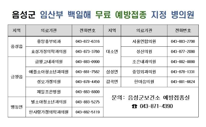 이번 조례 제정으로 2026년 1월부터 음성군에 주민등록을 둔 임산부와 돌봄 가족을 대상으로 백일해 무료 예방접종이 시행된다. 지원 대상은 임신 27주에서 36주, 분만 후 6개월 이내의 임산부와 배우자 그리고 영아의 (외)조부모를 포함한다.
