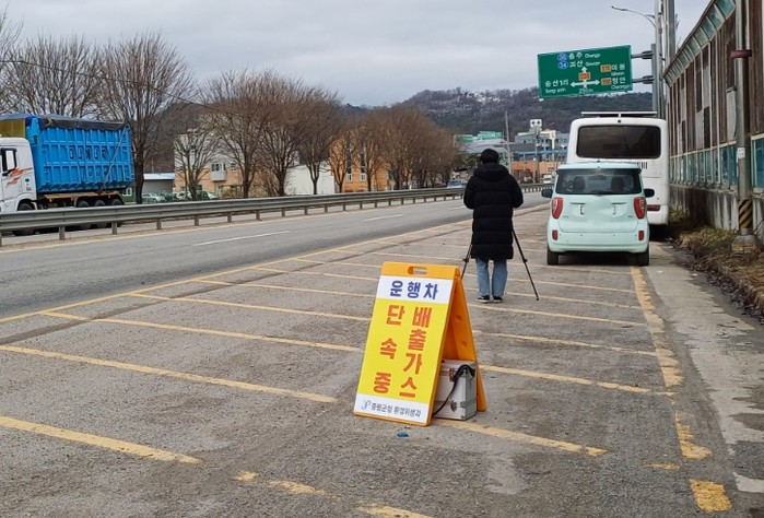 군은 자동차 배출가스를 주요 오염원으로 보고, 운행차 배출가스 점검과 공회전 단속을 강화하기 위한 전담 단속반을 편성했다.
