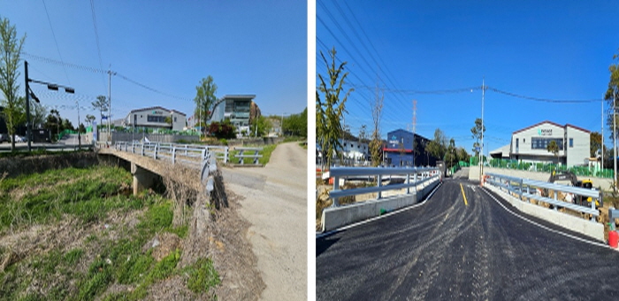 | ▲ 예지교 확장 공사 전(왼쪽)과 공사 후(오른쪽) 모습 |