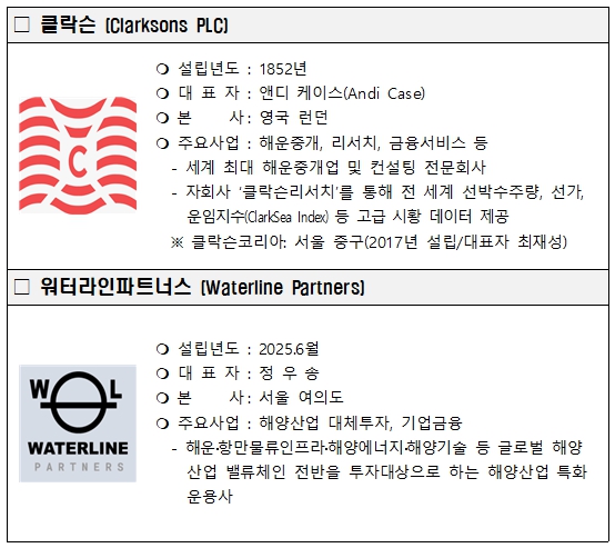 1852년 영국에서 설립된 세계 최대 해운 중개 및 컨설팅 기업인 클락슨(런던 증권거래소 상장)은 현재 25개국에 50개 이상의 네트워크를 보유하고 있으며, 한국법인인 클락슨 코리아의 부산지점 설립을 통해 해상풍력 프로젝트 지원은 물론 독보적인 해운 데이터 분석력을 지역 금융업계에 본격적으로 제공할 예정이다.