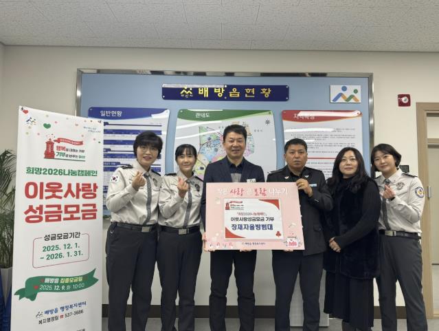 [파이낸셜경제=김영란 기자] 배방읍 장재자율방범대는 지난 15일 배방읍 행정복지센터에서 지역 내 어려운 이웃을 돕기 위한 ‘희망2026 나눔캠페인’에 동참해 성금 100만 원을 전달했다.