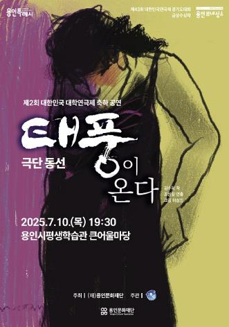 [파이낸셜경제=김기보 기자] 용인문화재단은 ‘제2회 대한민국 대학연극제’ 축하 공연으로, 극단 ‘동선’의 연극 《태풍이 온다》를 오는 7월 10일 오후 7시 30분, 용인시평생학습관 큰어울마당에서 선보인다.