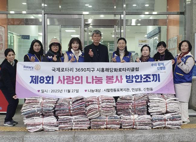 최미영 시흥해당화로타리클럽 회장은 “작은 정성이지만 추운 겨울을 보내는 어르신들에게 보탬이 되길 바란다”라며 “앞으로도 지역사회와 함께 성장하며 이웃을 위한 나눔 활동을 지속적으로 이어가겠다”라고 말했다.