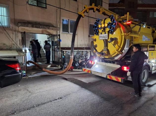 | ▲ 하수도 민원 발생 현장에 출동해 복구 작업 중인 비상 대응반 |
