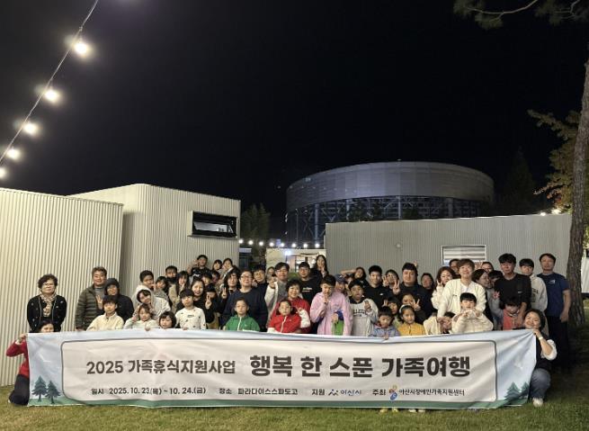 [파이낸셜경제=김영란 기자] 아산시장애인가족지원센터는 23일부터 1박 2일간 파라다이스 스파 도고에서 관내 장애인 가족을 대상으로 ‘2025년 행복 한 스푼 가족여행’을 진행했다고 밝혔다.