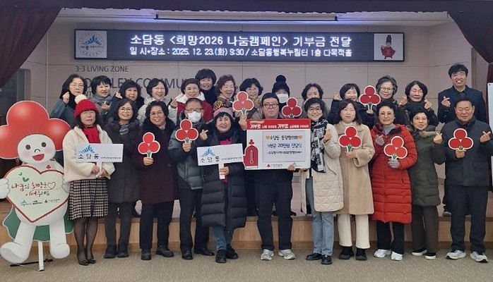 허문선 소담동장은 “이번 기부 활동을 통해 지역 주민들의 따뜻한 마음이 하나로 모였음을 확인했다”며, “앞으로도 기부와 나눔을 실천해 더욱 풍요롭고 따뜻한 지역사회를 만드는 데 힘쓸 것”이라고 말했다.