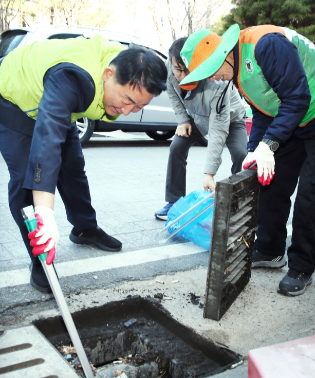 | ▲ 서철모 서구청장이 괴정동 우정가로공원 일대에서 환경정화 활동을 펼치고 있다 |