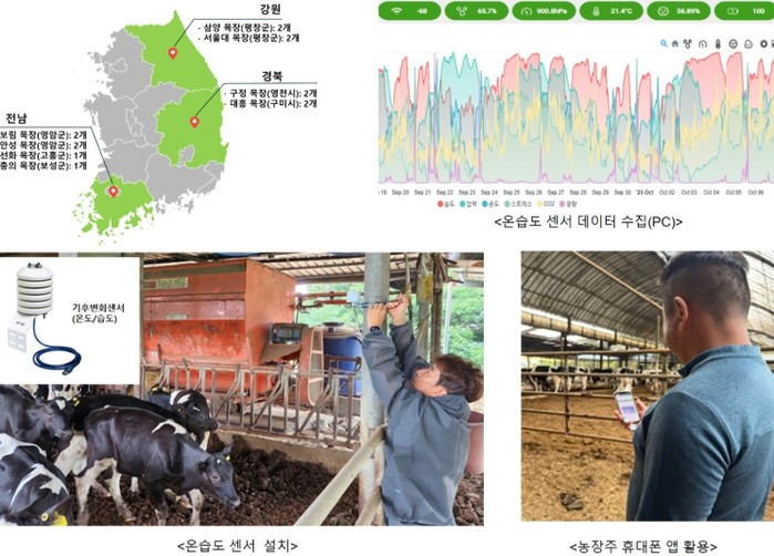 연구팀은 농장 내부에 설치된 환경 센서를 통해 측정한 온도·습도 자료와 기상청(KMA)의 지역별 기상 데이터를 비교·분석해, 실제 젖소가 받는 열 스트레스 수준을 정량적으로 평가했다.
