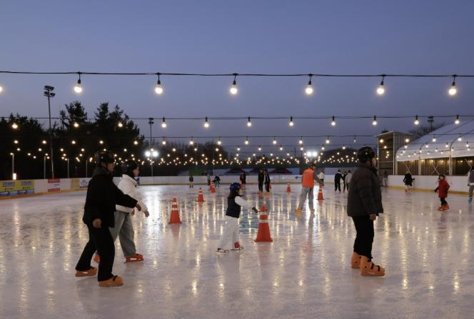 | ▲ 지난 19일, ‘빙파니아’ 개장식에서 시민들이 빙판 위에서 스케이팅을 즐기고 있다. |