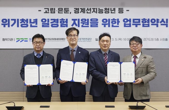 [파이낸셜경제=김영란 기자] 경기도와 경기도미래세대재단, 한국승강기안전공단 경인지역본부는 5일 경기도청 서희홀에서 ‘위기청년 일경험 지원을 위한 업무협약’을 체결했다.
