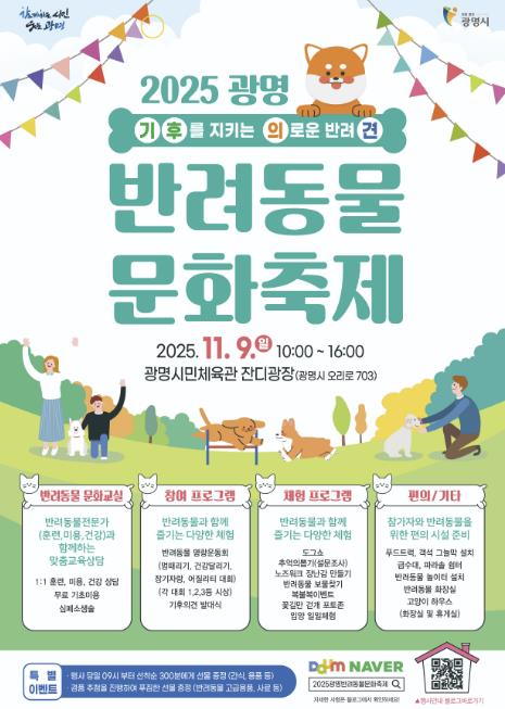 시는 오는 9일 광명시민체육관 잔디광장에서 ‘2025년 광명 반려동물 문화축제’를 개최한다.