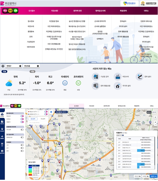 시는 '부산 안전 ON' 누리집을 통해 시민들이 재난 상황에서도 필요한 정보를 쉽고 빠르게 확인하고, 평소에도 안전한 생활을 준비할 수 있는 신뢰도 높은 도시 안전 정보 창구로 자리매김할 수 있도록 지속적으로 서비스를 고도화해 나갈 계획이다.