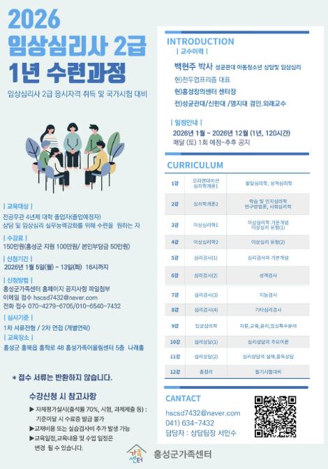 박미성 가정행복과장은 “이번 과정을 통해 배출될 전문가들이 우리 지역 아동들의 심리적 안전망을 구축하는 핵심 주역이 될 것으로 확신한다”라며, “아이들의밝고 건강한 성장을 위해 함께 발맞춰 나갈 군민 여러분의 사명감 있는 도전을 기다린다”고 말했다.