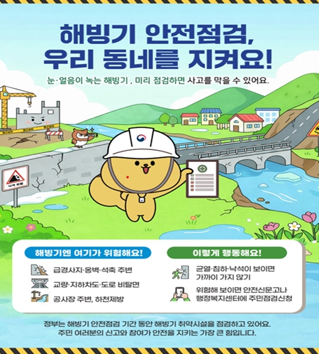 해빙기(2~4월)는 겨울철 얼어 있던 지표면이 기온 상승으로 녹으면서 지반이 약화되는 시기로, 이로 인해 붕괴·전도·낙석 등 각종 안전사고 발생 위험이 증가하는 시기다.