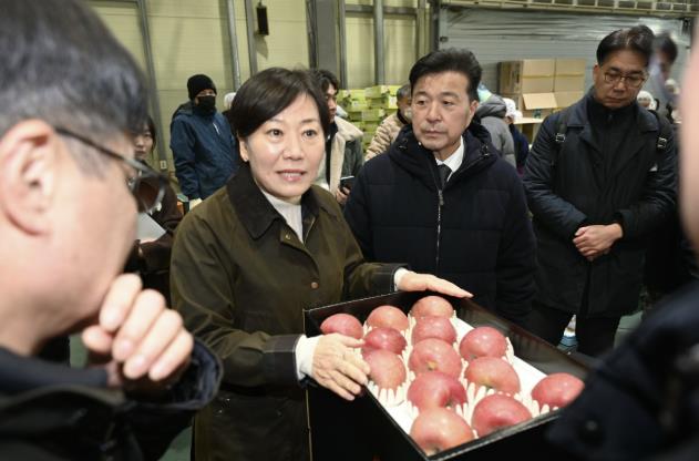 [파이낸셜경제=김영란 기자] 예산군은 송미령 농림축산식품부 장관이 지난 7일 예산농산물유통센터를 방문해 설 성수품인 사과의 저장 및 공급 상황을 점검했다고 밝혔다.