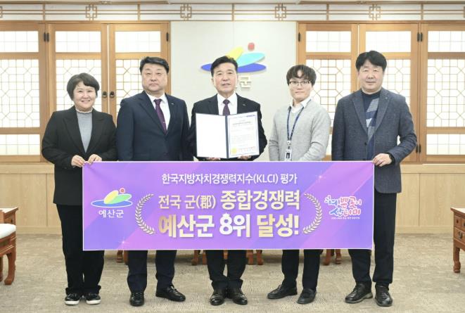 [파이낸셜경제=김영란 기자] 예산군은 (사)한국공공자치연구원이 발표한 ‘2025년 한국지방자치경쟁력지수(KLCI)’에서 군 단위 종합경쟁력 부문 508.1점을 기록하며 전국 82개 군 가운데 종합 8위를 차지했다고 밝혔다.