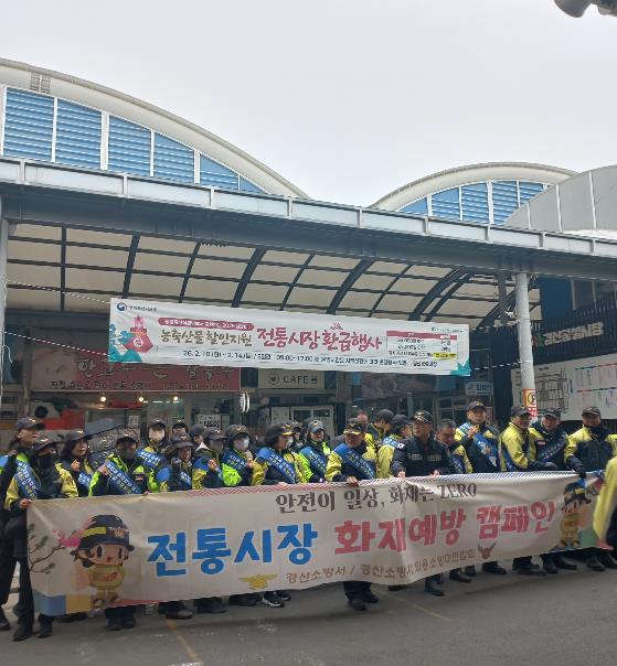 [파이낸셜경제=김지훈 기자] 경산남성·여성의용소방대는 민족 대명절인 설을 앞두고 2월 10일, 경산공설시장 일대에서 안전하고 따뜻한 명절 분위기 조성을 위한 ‘전통시장 화재예방 캠페인’을 실시했다.