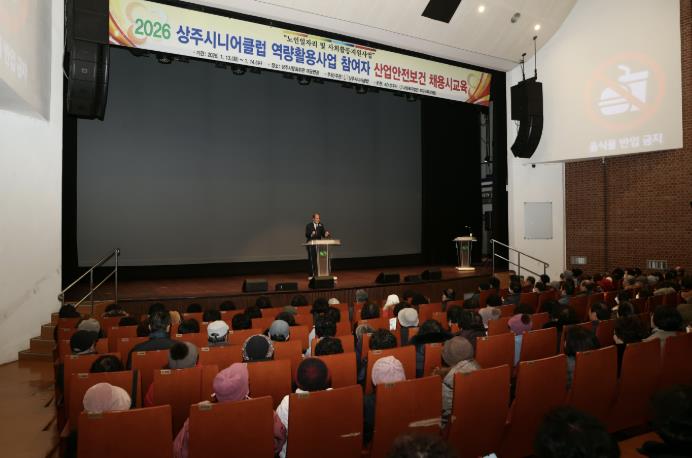 [파이낸셜경제=김지훈 기자] 상주시니어클럽은 2026년 노인일자리 및 사회활동지원사업‘노인역량활용사업단’참여자를 대상으로 1월 13일부터 14일까지 이틀간 상주문화회관에서 산업안전보건교육을 실시했다.