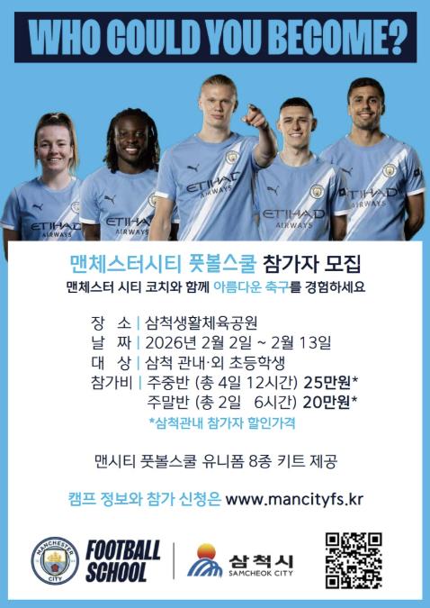 [파이낸셜경제=조성환 기자] 삼척시는 ‘맨체스터 시티 풋볼 스쿨(MCFS)’ 겨울 캠프를 운영한다.