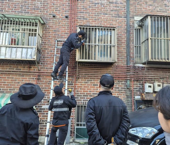 | ▲ 정신건강 위기의 김** 씨의 행정입원을 위해 장위1동 직원과 경찰, 소방직원이 노력하고 있다. |