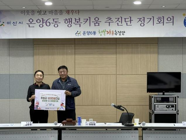 [파이낸셜경제=김영란 기자] 아산시 온양6동 행복키움추진단은 16일 온양6동 도시재생주민협의체로부터 프리마켓 ‘온주시장’을 통해 마련한 수익금 100만원을 후원금으로 전달받았다.