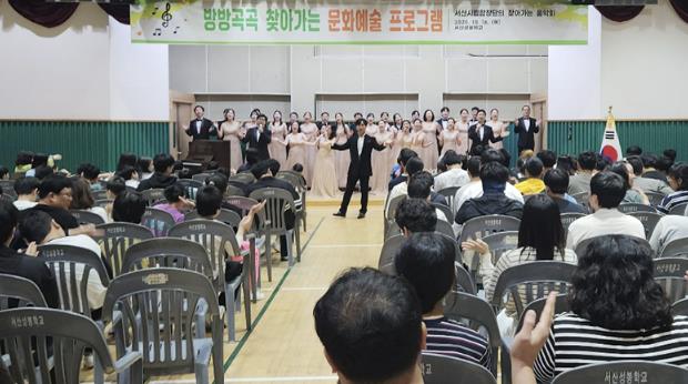 이어, 서산시립합창단은 아름다운 하모니를 이룬 공연을 선보여 학생에게 큰 호응을 받았다.