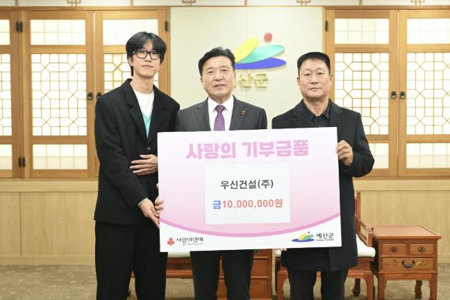 [파이낸셜경제=김영란 기자] 예산군은 전문건설업체 우신건설㈜이 군청을 방문해 ‘희망 2026 나눔캠페인’ 이웃돕기 성금 1000만원을 기탁했다고 밝혔다.
