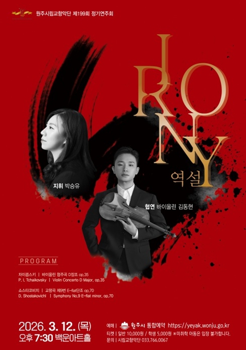 [파이낸셜경제=조성환 기자] 원주시립교향악단은 다음 달 12일 오후 7시 30분 백운아트홀에서 제199회 정기연주회 ‘IRONY 역설’을 개최한다.