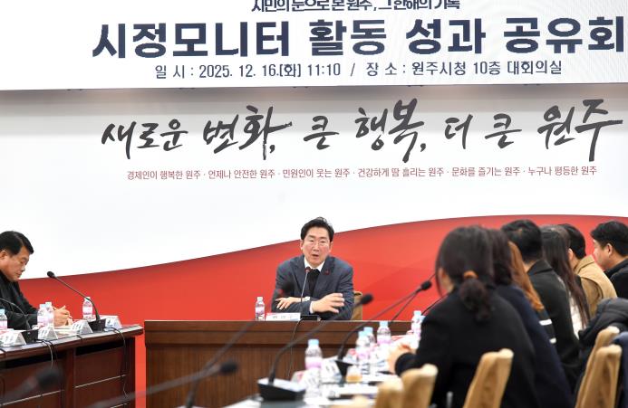 [파이낸셜경제=조성환 기자] 원주시 시정모니터는 지난 16일 시청 대회의실에서 ‘2025년 시정모니터 활동 성과 공유회’를 성황리에 개최했다.
