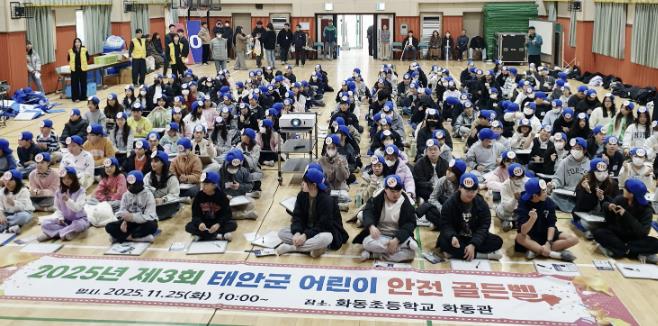군은 지난 25일 태안읍 화동초등학교에서 화동초·백화초·태안초·송암초·안중초 3~6학년 학생 총 200여 명이 참여한 가운데 ‘2025년 태안군 어린이 안전 골든벨 퀴즈대회’를 개최했다고 밝혔다.