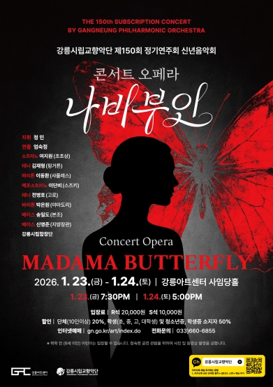 [파이낸셜경제=조성환 기자] 강릉시립교향악단은 2026년의 첫 정기연주회로 오는 23일(금) 19시 30분, 24일(토) 17시 강릉아트센터 사임당홀에서 콘서트 오페라‘나비부인’을 선보인다.