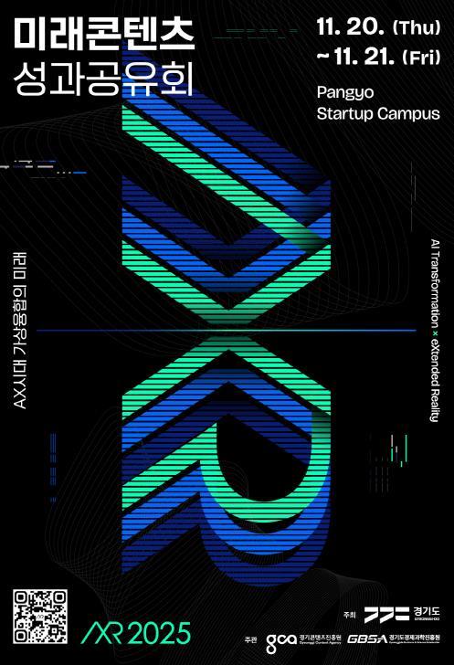 [파이낸셜경제=김영란 기자] 경기도(경기콘텐츠진흥원, 경기도경제과학진흥원)는 가상융합산업의 지원성과 확산을 위해 ‘2025년 경기도 가상융합산업 성과공유회’를 오는 20~21일 양일간 판교 스타트업 캠퍼스에서 개최한다.