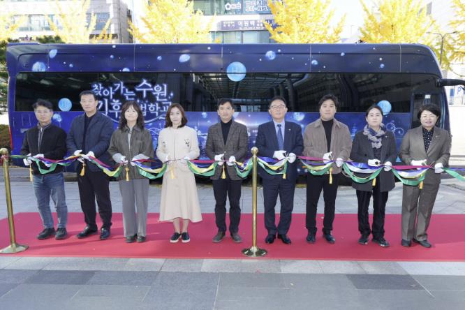 버스 내부는 ▲기후변화 체험 ▲탄소중립 퀴즈 ▲에너지 절약 미션 등 참여형 프로그램으로 구성됐으며, 학교와 지역행사를 직접 찾아가 이동형 환경교실로 운영한다. 수원시는 시민과 학생이 기후인식을 높이고 생활 속 탄소중립을 실천하도록 적극 지원할 계획이다.