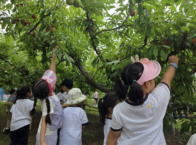 | ▲ 수원시 과수공원에서 아이들이 과일 수확 체험을 하고있다. |