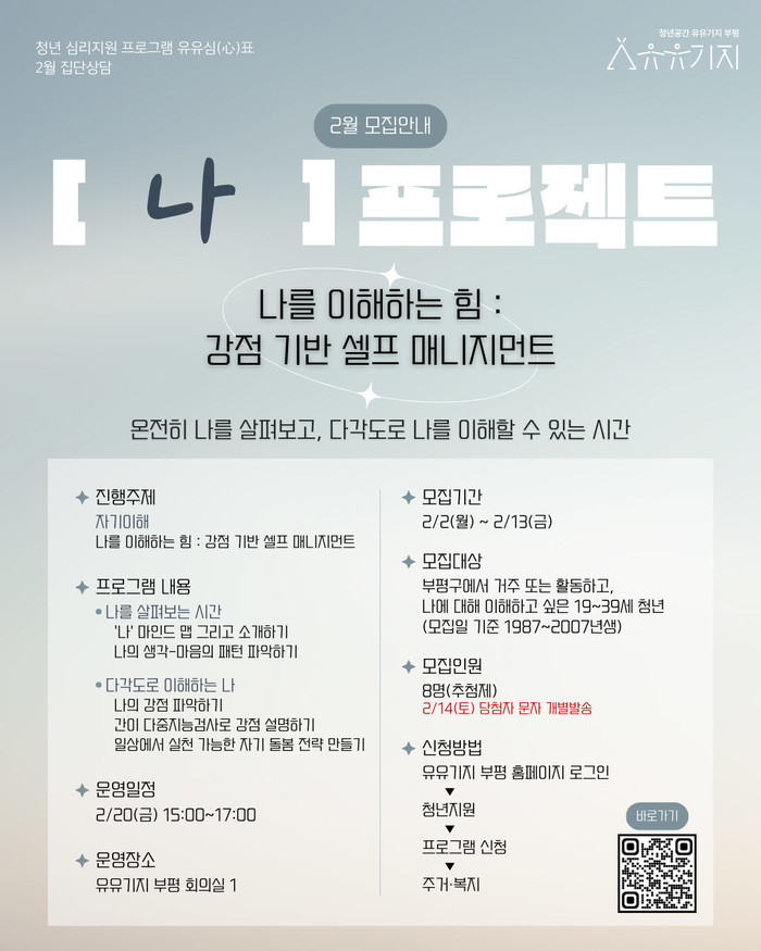 집단상담인 ‘나 프로젝트’는 자기이해를 주제로 2월 20일에 진행된다.