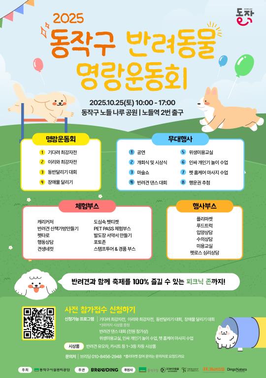 [파이낸셜경제=김예빈 기자] 동작구가 오는 25일 노들나루공원(노량진로 247)에서 ‘2025 반려동물 명랑운동회’를 개최한다고 밝혔다.