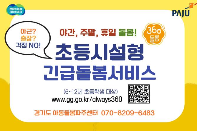 아울러 파주시는 아동 돌봄 공백 해소를 위해 ‘초등시설형 긴급돌봄서비스(언제나돌봄)’와 ‘연장돌봄 서비스’를 대폭 확대 운영하고 있다.