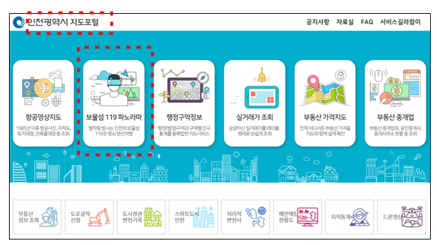 이 서비스는 단순한 섬을 소개하는 것을 넘어 시민들에게 생생한 섬 정보를 제공하고 인천i바다패스 및 섬 관광 활성화를 지원하기 위해 ‘인천광역시 지도포털을 통해 보물섬119파노라마 웹서비스를 공개 운영하고 있으며, 지난 9월부터 ‘K-GEO Festa’와 ‘인천 시민의 날’ 기념행사에서도 3차원 보물섬 119 가상현실(VR) 영상 체험 기회를 제공하여 시민들로부터 큰 호응을 얻은 바 있다.