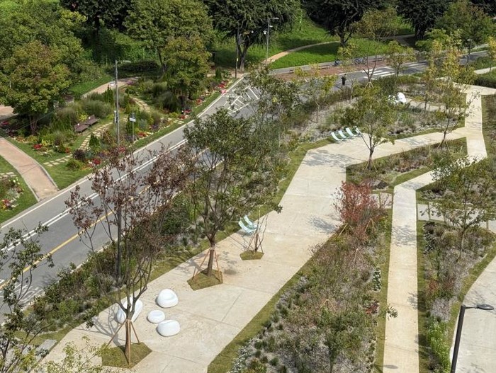 또한, 가을 정취를 느낄 수 있는 억새를 비롯해 팽나무, 낙상홍 등 수목과 에키네시아 등 다양한 색감의 야생화를 식재하여, 아름다운 녹지 풍경과 수변 공간이 어우러진 감각적인 쉼터로 재탄생됐다.
