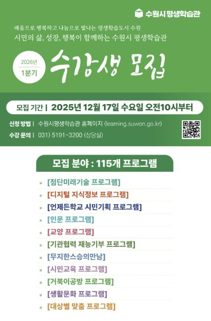 | ▲ ‘수원시평생학습관 2026년 1분기 프로그램 수강생 모집’ 홍보물 |