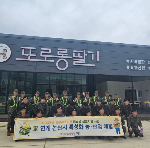 [파이낸셜경제=김영란 기자] 논산시청소년청년재단은 여성가족부가 주관하는 ‘2025년 인구감소지역 청소년 성장지원 사업’운영지역으로 선정됨에 따라, 논산 지역에서 근무 중인 군장병을 대상으로 '軍연계 지역 특성화 사업 농·산업 체험'을 3회차 진행했다고 밝혔다.
