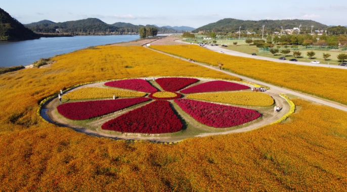 부여읍 구교리 420번지(13ha)와 규암면 신리 37-2번지(3ha) 일원에 걸쳐 총 16ha 규모로 조성된 코스모스 단지에는 황금빛 물결의 황화 코스모스와 아기자기하고 다양한 색감을 뽐내는 코스모스가 어우러져 만개했다.