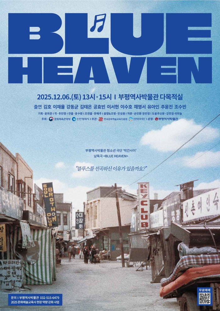 ‘BLUE HEAVEN’은 1970년대 초반 ‘부평 미군부대’를 배경으로 한 청소년 밴드 이야기로, 오는 12월 6일 오후 1시와 3시(총 2회)에 박물관 다목적실에서 열린다.