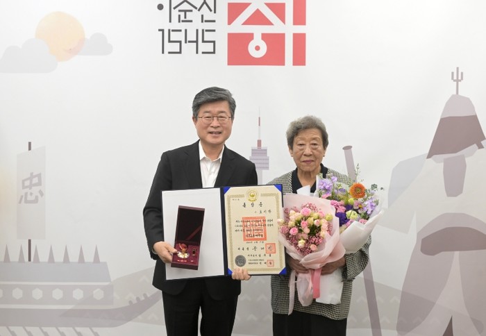 구청장실에서 열린 전수식에는 호재숙 씨를 비롯해 미국에 거주 중인 호 지사의 손자 호윤진 씨과 그의 배우자, 조카 등도 함께해 의미를 더했다.