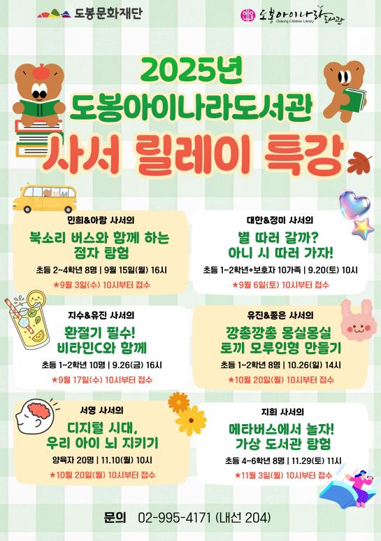 | ▲ 2025년 도봉아이나라도서관 사서 릴레이 특강 안내 포스터 |