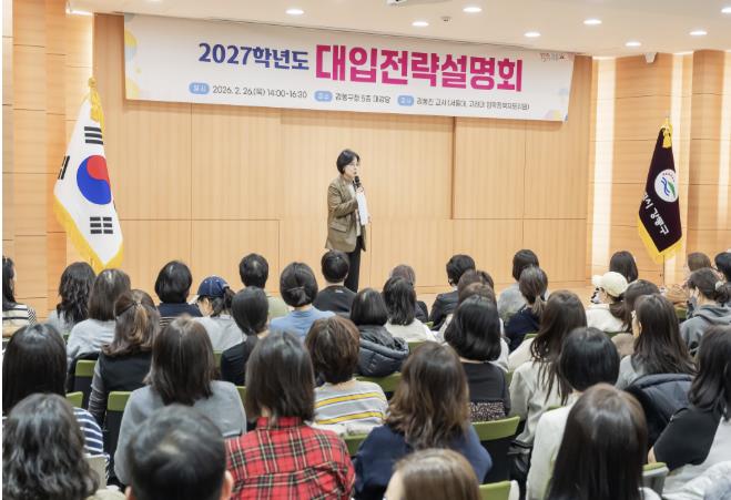 | ▲ 2026. 2. 26. 2027학년도 대입전략 설명회 개최 (가운데 이수희 강동구청장) |