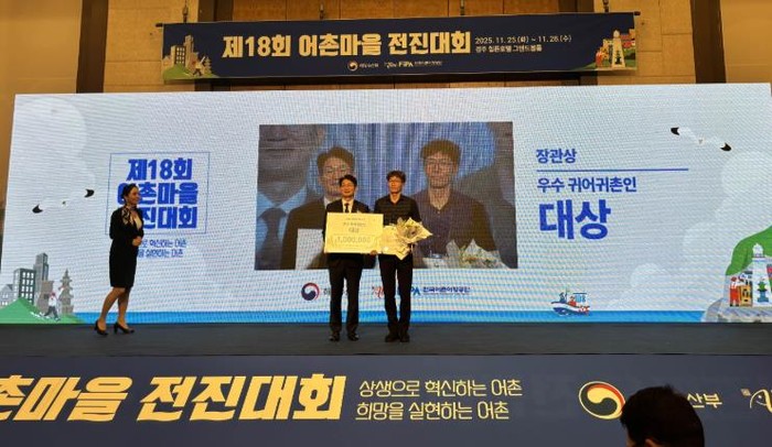[파이낸셜경제=김예빈 기자] 전라남도해양수산과학원은 오늘 경주에서 열린 제18회 어촌마을 전진대회에서 2020년 전남귀어학교 제2기 수료생인 완도 김진호(46) 씨가 우수 귀어귀촌인 대상에 선정돼 해양수산부 장관 표창을 받았다고 밝혔다.