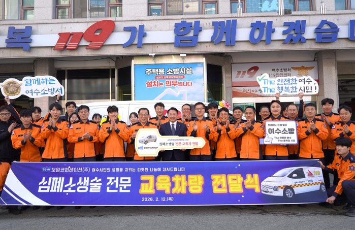 [파이낸셜경제=김예빈 기자] 여수소방서는 2월 12일, 보임그룹 한문선 회장의 기부로 마련된 심폐소생술 교육차량 전달식을 개최했다.