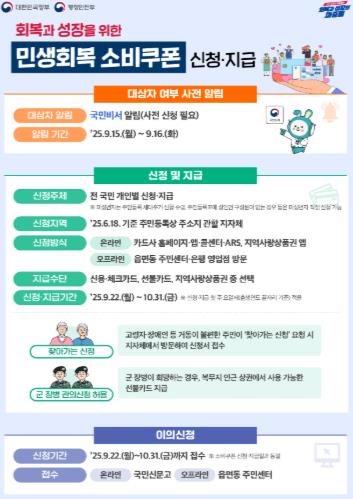 앞서, 9월 12일까지 진행된 1차 소비쿠폰 지급 당시 관내 지급대상자 25만 4,302명에게 약 513억 원을 지급하여 99.7%의 지급률을 기록했다.